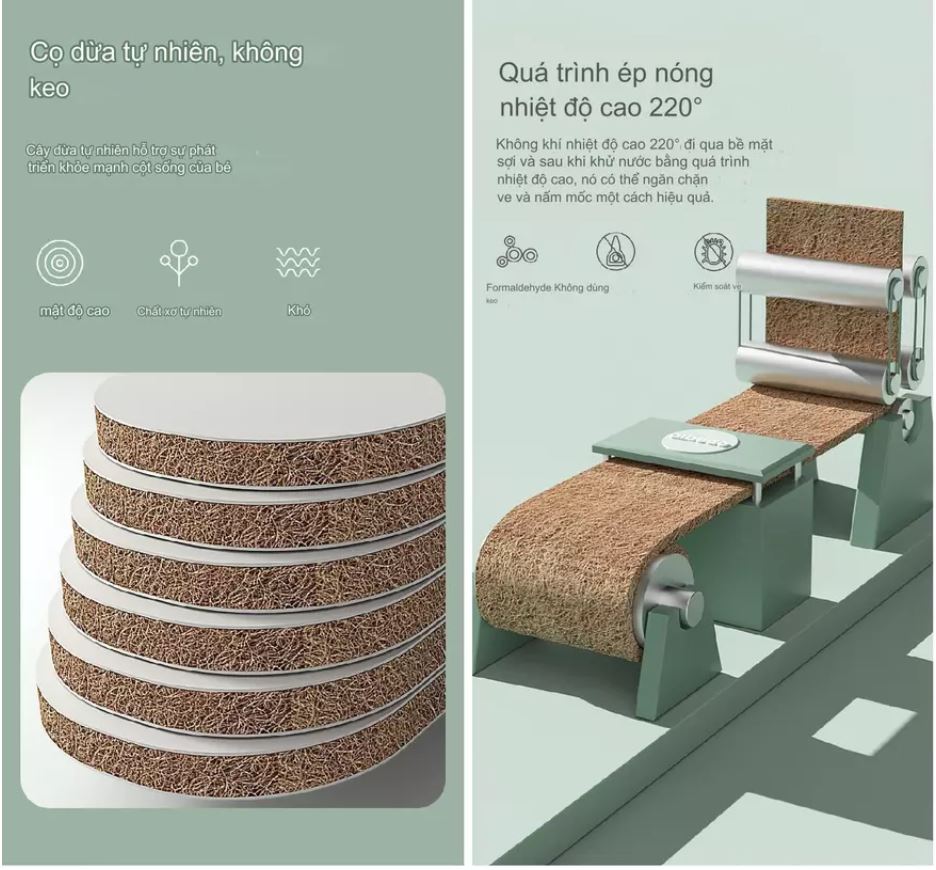 ✔️+ Ruột gối có phần cứng được làm từ xơ dừa chọn lọc, giúp giảm thiểu các bụi li ti, tăng mật độ, giúp hỗ trợ cột sống của trẻ tốt nhất và sử dụng quy trình ép nóng ở 220 độ c.